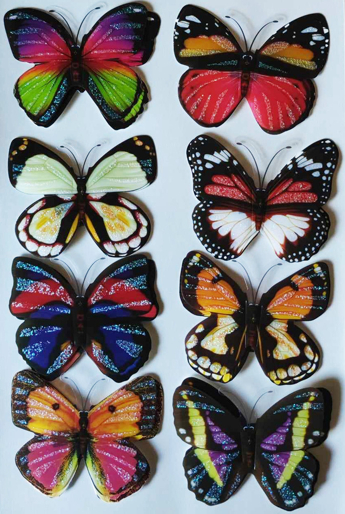 Csillogós színes pillangók 3D matrica, 8 db-os csomag