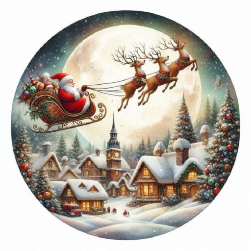 A város felett elsuhanó szán, karácsonyi ablakmatrica
