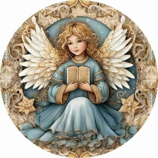 Angyal kék ruhában, karácsonyi ablakmatrica