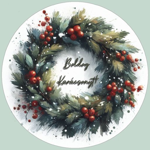 Festett hatású karácsonyi bogyós koszorú, ablakmatrica