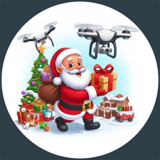 Mikulás drónokkal, karácsonyi ablakmatrica
