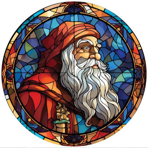 Ólomüveg hatású karácsonyi ablakmatrica, Mikulás (2)