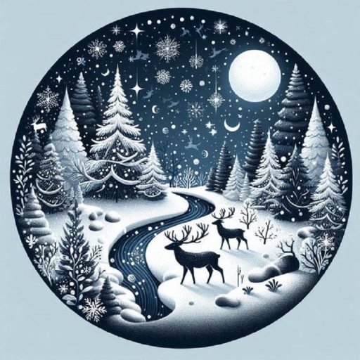 Téli éj a havas tájon, karácsonyi ablakmatrica