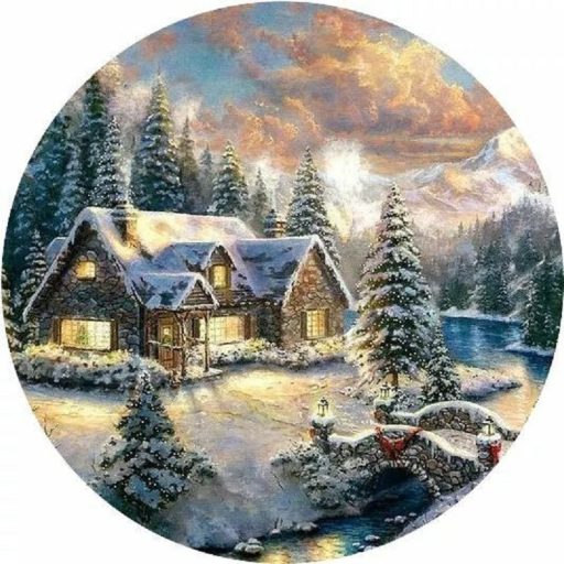 Téli házikó a fagyos patak mellett, ablakmatrica