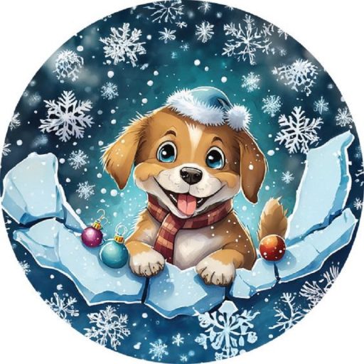 Téli vidám kiskutya, karácsonyi ablakmatrica