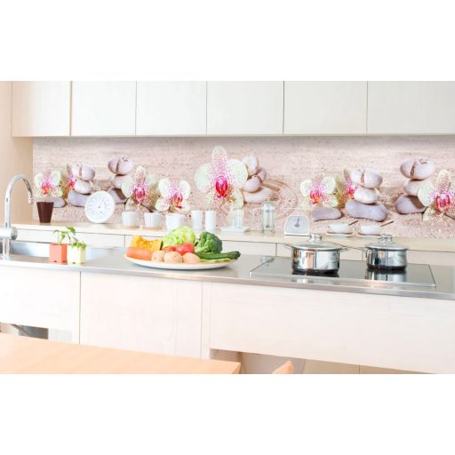 Tengerpart orchidea virágokkal, konyhai matrica hátfal